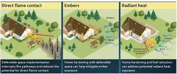 - Remove all dead/dry plants, weeds, leaves, needles, debris from ground, roofs, gutters, decks, stairs, and under structures.
