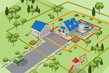 Defensible space is the modified area around your home that slows or stops wildfire spread, creating a safer zone for firefighting. California law (Public Resources Code 4291) mandates 100 feet of defensible space in State Responsibility Areas (SRA) and Very High Fire Hazard Severity Zones (VHFHSZ), divided into three zones: Zone 0 (0-5 feet), Zone 1 (5-30 feet), and Zone 2 (30-100 feet). These zones focus on reducing fuel loads—anything that can burn—like vegetation, debris, and stored items.